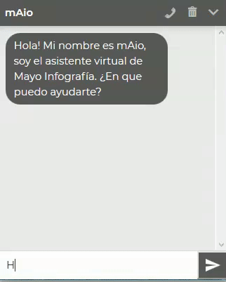 Nuestro nuevo Asistente Virtual programado para contestar e intentar resolver las dudas que tengas sobre el funcionamiento de Mayo Infografía.